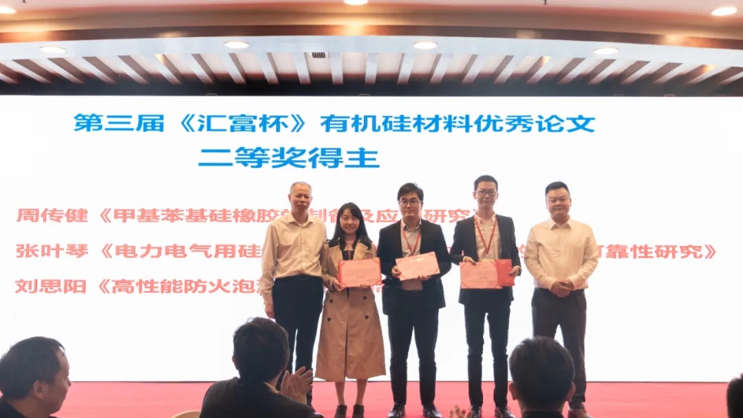 有機硅材料編輯部主任張愛霞女士,湖北匯富納米材料股份有限公司銷售總監胡利建先生為三等獎得主頒獎。